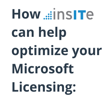 Move your Microsoft licensing to Insite and we’ll guarantee savings through our right-sizing exercise – all backed by a documented renewal plan that eliminates surprises. Before you commit you will receive a free license optimization review to identify just how much you will be able to save.